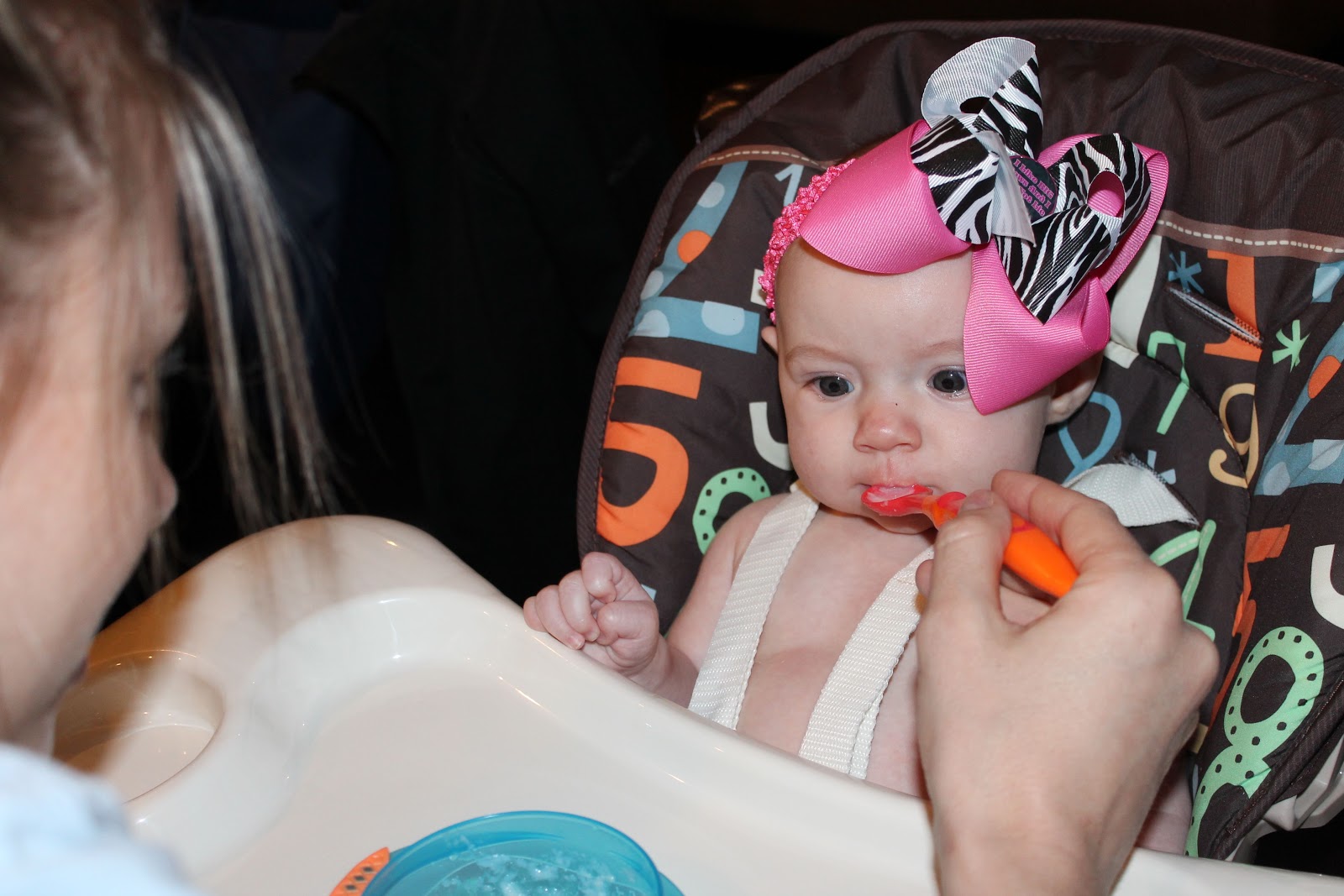 Just after your 4 month doctor's appointment ..... we are about to try rice cereal for the first time!!